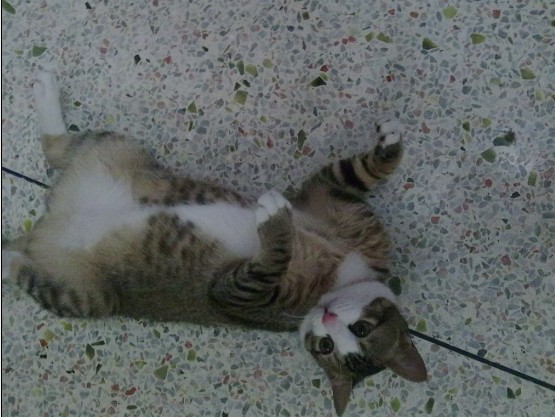 晚上年年的精神特别好,甚至半夜还会蹲在厕所抓小强,有两次还吧嗒捉了只苍蝇吃..= =。 睡觉前我经常会跟他疯玩一会~