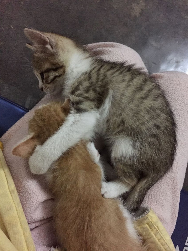 今年一月份的时候从爱猫协会领养了小黄和小黑,它们是同胞姐妹!